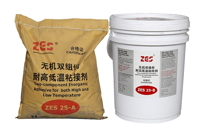 ZES25 is a two-component inorganic adhesive for both high and low temperature, made from inorganic reinforcing powder, mineral, curing agent, additives, etc.