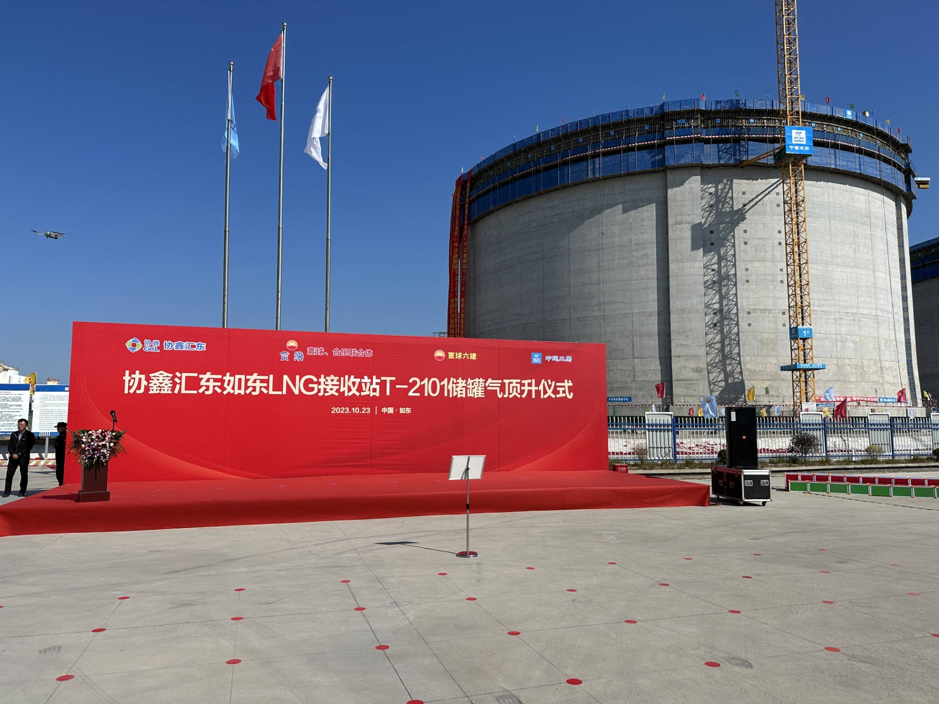 10月23日上午9點(diǎn)40分,如東洋口港陽(yáng)光島協(xié)鑫匯東如東LNG接收站項(xiàng)目現(xiàn)場(chǎng),在4臺(tái)鼓風(fēng)機(jī)連續(xù)130分鐘不間斷“充氣”下,一頂由36塊鋼結(jié)構(gòu)板組成、總重達(dá)900噸的“巨型鍋蓋”平穩(wěn)升至45米高空,隨著拱頂板與承壓環(huán)完美對(duì)接,公司參建的T—2101號(hào)儲(chǔ)罐順利完成氣頂升作業(yè),標(biāo)志著國(guó)內(nèi)首個(gè)集LNG接卸儲(chǔ)存、氣液外輸、裝船轉(zhuǎn)運(yùn)等多業(yè)務(wù)、多功能于一體的LNG接收站項(xiàng)目由主體施工階段轉(zhuǎn)入內(nèi)罐安裝階段。在此次項(xiàng)目中,振申絕熱承擔(dān)儲(chǔ)罐鋁吊頂材料供應(yīng)及施工工作。