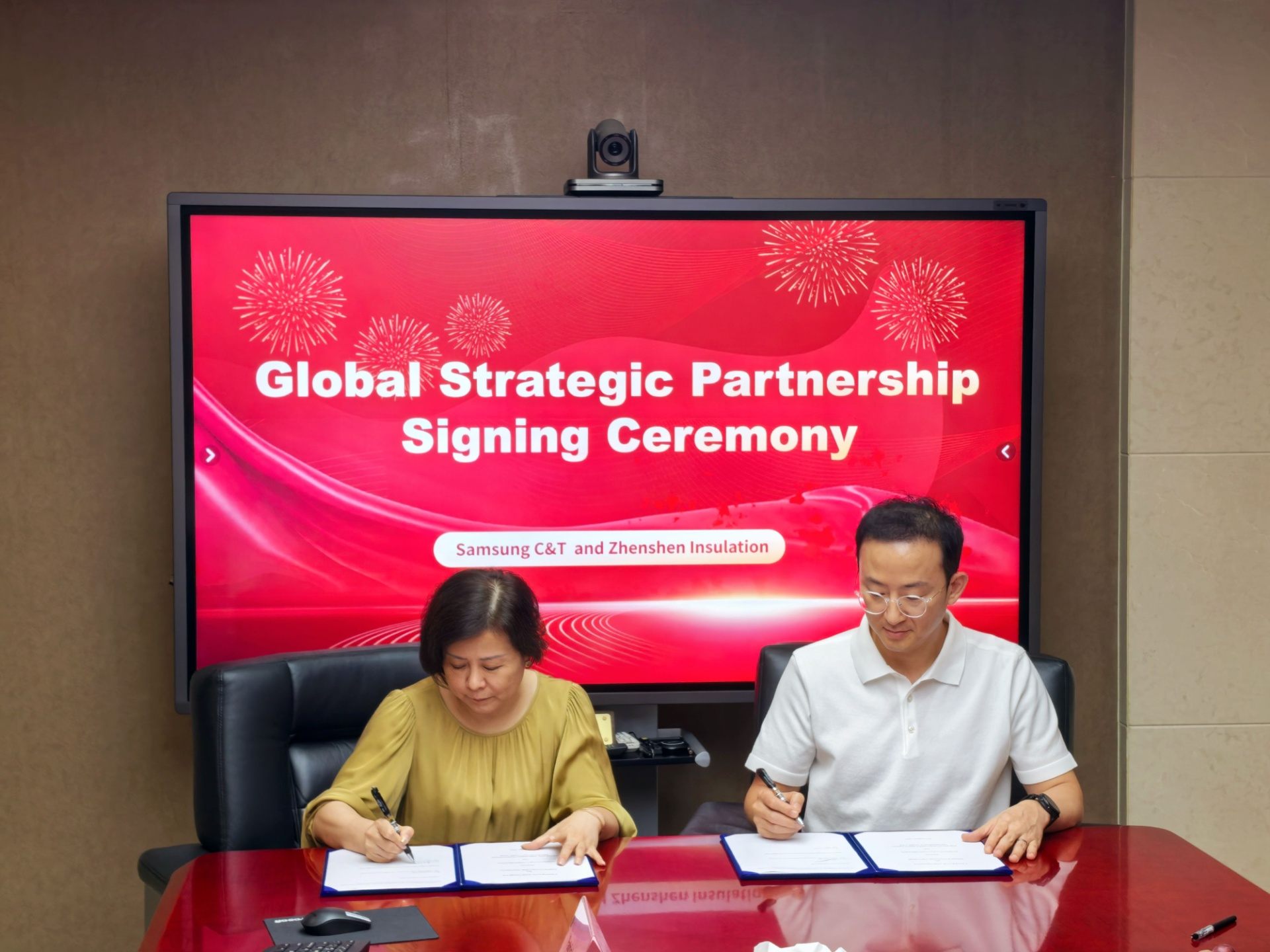 8月21日,三星物產(chǎn)集團(tuán)領(lǐng)導(dǎo)Yongsub Park先生帶領(lǐng)團(tuán)隊訪問了振申絕熱的總部,并簽訂了全球戰(zhàn)略合作協(xié)議。振申絕熱的董事長章雅琴女士和三星物產(chǎn)集團(tuán)的領(lǐng)導(dǎo)Yongsub Park先生分別代表雙方簽約。