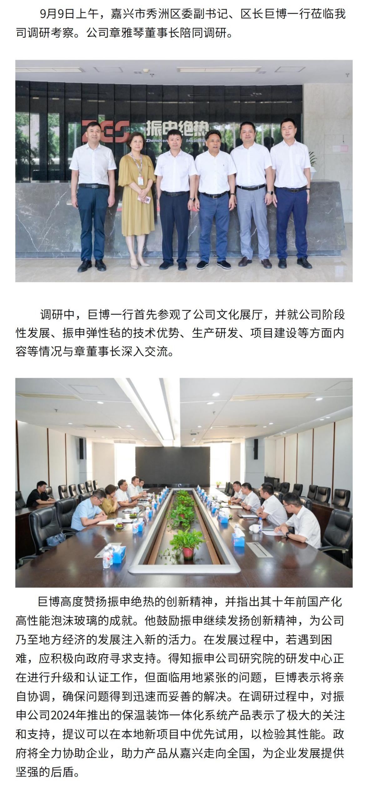 嘉興市秀洲區(qū)委副書記、區(qū)長巨博一行蒞臨振申絕熱調(diào)研考察