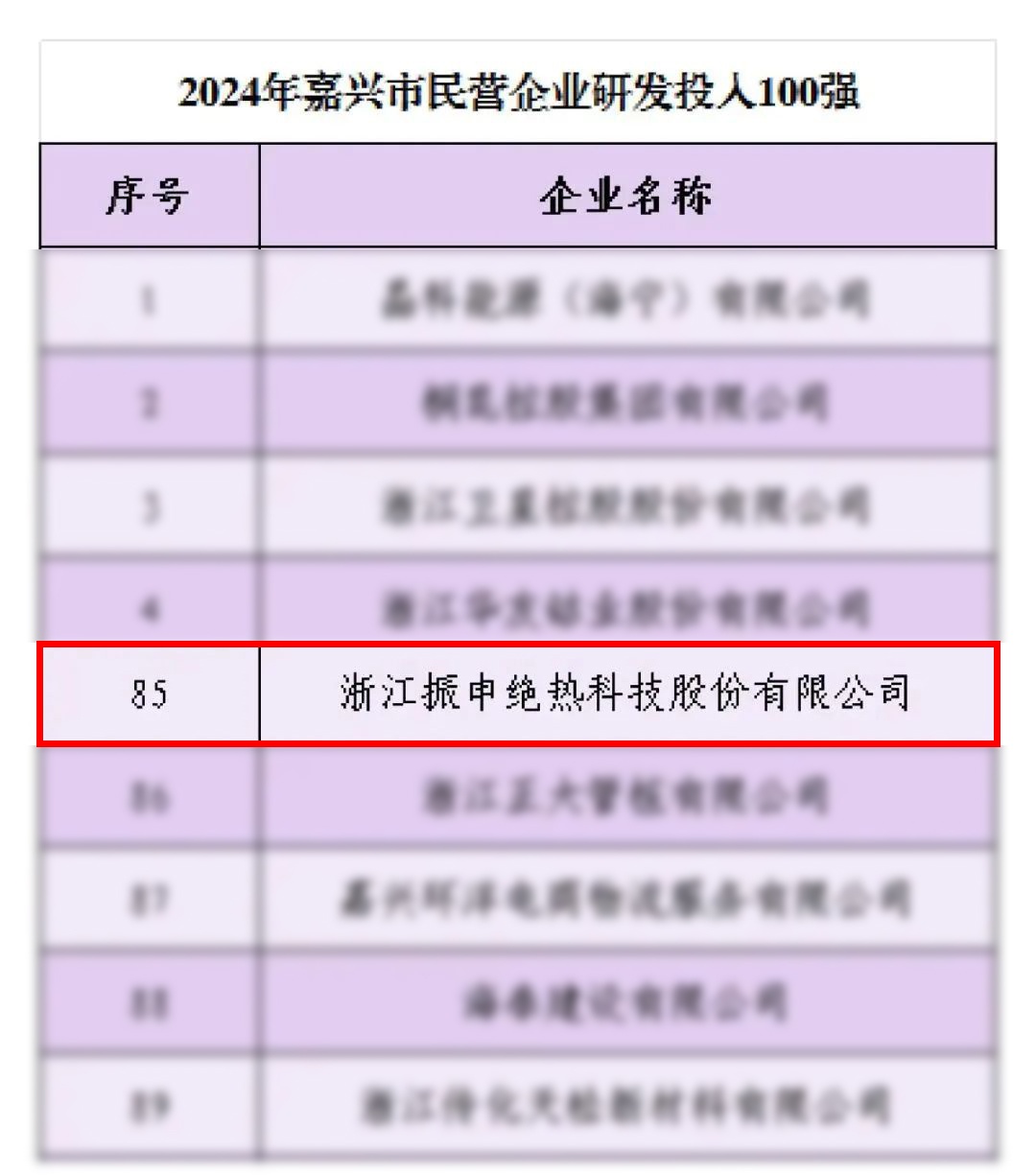 在 2024 年嘉興市民營企業(yè)的評選中,振申絕熱脫穎而出,榮登【利潤 100 強】、【研發(fā)投入 100 強】、【納稅 100 強】三張榜單!這一輝煌成就,不僅是對振申絕熱過往努力的高度認可,更是其未來發(fā)展的強大動力。