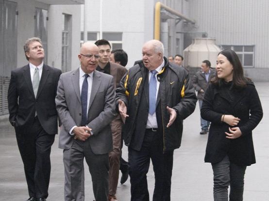 當天下午,在公司總經(jīng)理助理周宏義的帶領下,H.B. Fuller一行人員參觀了我公司生產(chǎn)廠區(qū)。